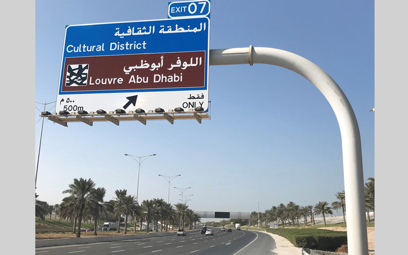 بلدية أبوظبي قامت بتنفيذ واستبدال اللوحات الإرشادية في الطرق المؤدية إلى متحف اللوفر. من المصدر