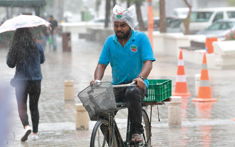 «إسعاف دبي» نصحت بعدم مغادرة البيوت عند هطول المطر الكثيف. تصوير: مصطفى قاسمي