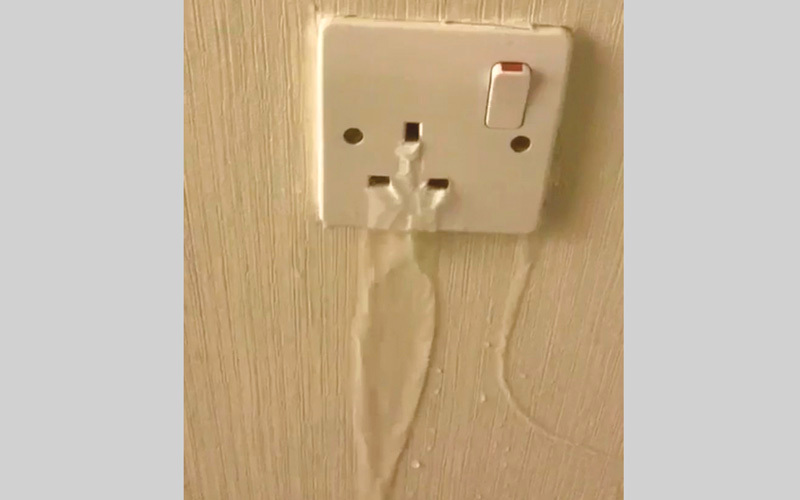 وأضافت "قام المواطن بعمل فتحة جديدة على سطح المسكن لتمديدات اللاقط الهوائي، ومن خلالها تسربت المياه إلى جميع ممرات الاسلاك ونقاط الكهرباء".