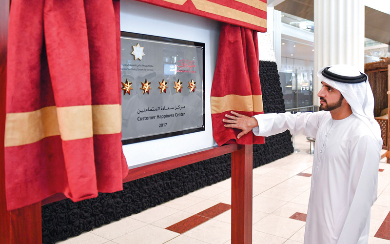 وقال سموه إن «نجاح مراكز سعادة المتعاملين، التابعة لحكومة دبي، في تطوير رحلة متعامل سعيدة، ينقلها إلى مراحل متقدمة من الكفاءة والفعالية، لتصبح نموذجاً يحتذى في تقديم الخدمات الحكومية».