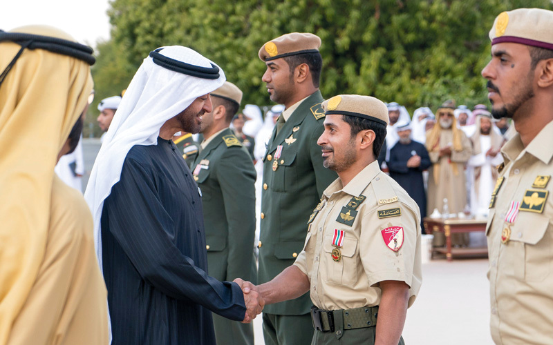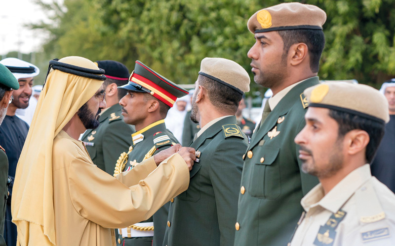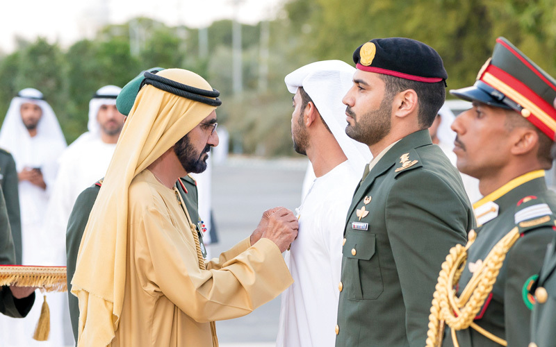 محمد بن راشد ومحمد بن زايد يقلِّـدان أبطالاً من القوات المسلحة «وسام الشجــاعة»