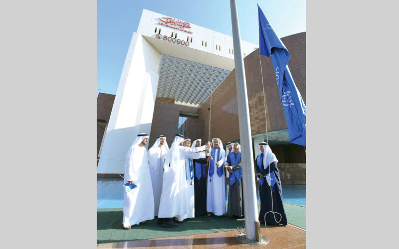 رفع راية حمدان بن محمد على مبنى بلدية دبي
