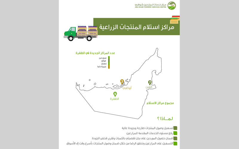 وبذلك يرتفع عدد مراكز استلام منتجات المزارعين، التابعة للمركز، إلى 20 مركزاً على مستوى الإمارة، تسعة مراكز منها في منطقة الظفرة، وسبعة في العين، وثلاثة في أبوظبي.