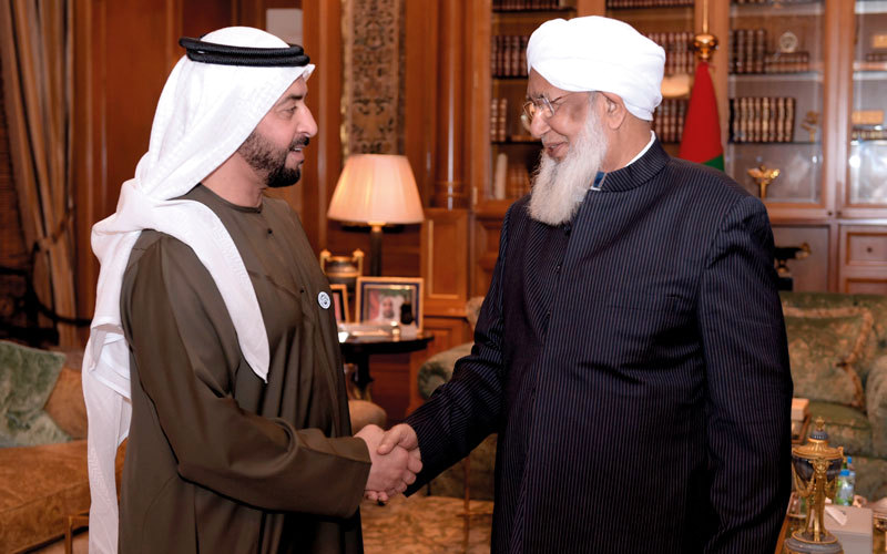 جاء ذلك، خلال استقبال سموه بقصر النخيل الأمين العام لجمعية علماء أهل السنة بالهند الرئيس التنفيذي لمؤتمر الشيخ زايد العالمي للسلام، فضيلة الشيخ أبوبكر أحمد، بحضور وكيل ديوان ممثل الحاكم في منطقة الظفرة، سلطان بن خلفان الرميثي، ومدير مكتب ممثل الحاكم في منطقة الظفرة، أحمد مطر الظاهري، والمدير التنفيذي للجنة الخير العالمية، الدكتور عبدالحكيم الأزهري.