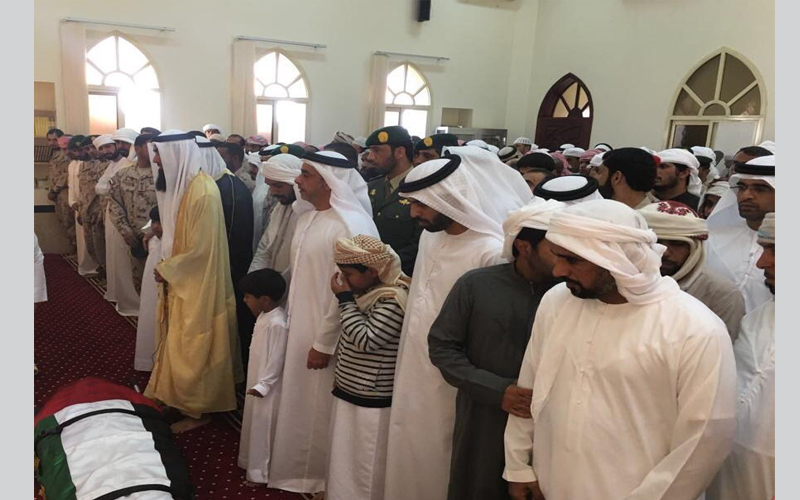 أدى الفريق سمو الشيخ سيف بن زايد آل نهيان نائب رئيس مجلس الوزراء وزير الداخلية، والشيخ أحمد بن سعود بن صقر القاسمي وجموع المصلين عقب صلاة الظهر اليوم في مسجد الحويلات برأس الخيمة صلاة الجنازة على جثمان شهيد الوطن العريف أول عبدالله محمد أحمد الدهماني الذي انتقل إلى جوار ربه خلال أدائه واجبه الوطني في عمليه " إعادة الأمل" ضمن قوات التحالف العربي الذي تقوده المملكة العربية السعودية للوقوف مع الشرعية في اليمن.