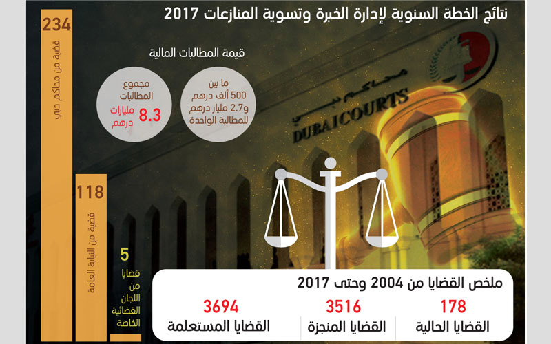«تسوية المنازعات» في دبي تنجز 375 قضية خلال 2017