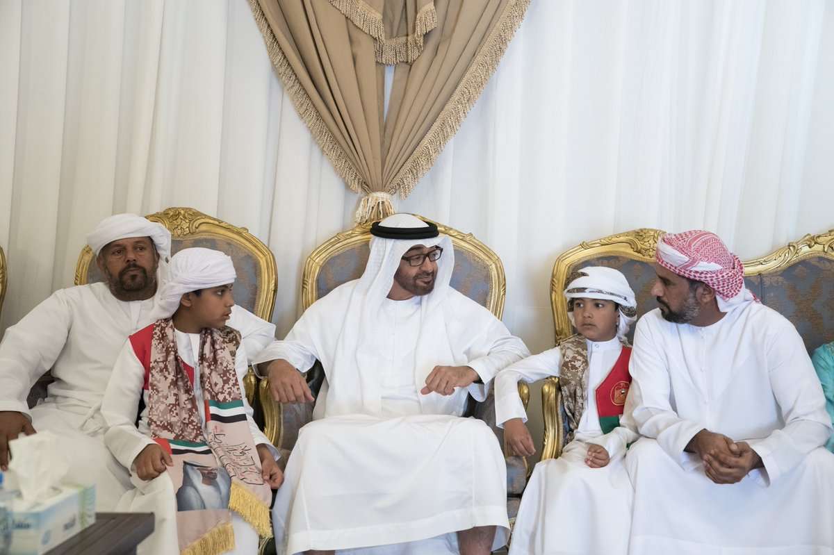 و أكد صاحب السمو الشيخ محمد بن زايد آل نهيان خلال حديثه مع والد الشهيد وإخوانه عن اعتزاز الامارات وفخرها بأبنائها الأبطال الذين يسطرون المواقف البطولية والمشرفة لهم ولأهليهم و دولتهم و يقدمون أغلى ما يملكون لأجل الوطن والحق والواجب وقال سموه إن أبناءنا يعكسون قيما تربوا عليها في الاخلاص والشجاعة والاقدام والبذل والتضحية.
