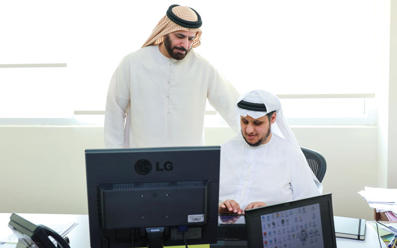 مدير إدارة الموارد البشرية بالإنابة أحمد المهيري مع محمد الغفلي. من المصدر