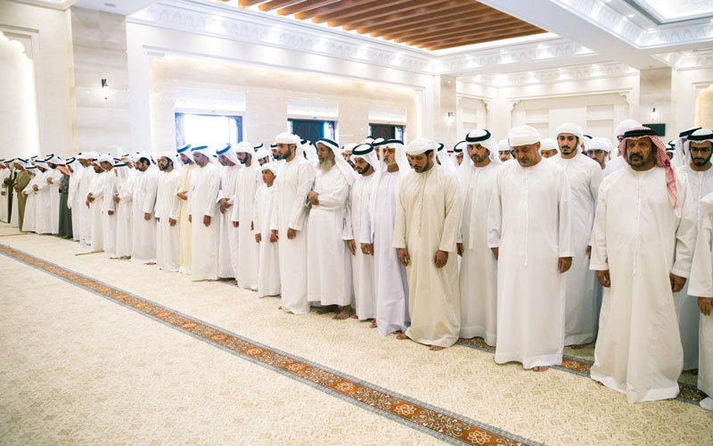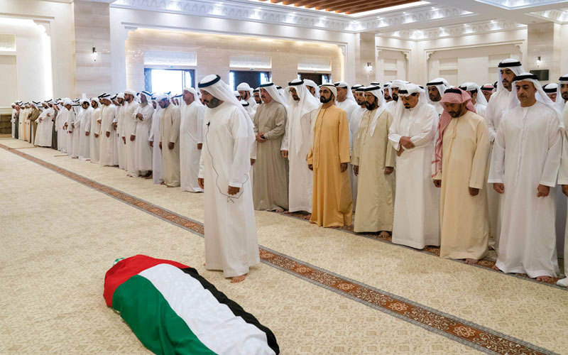 كما أدّى صلاة الجنازة إلى جانب سموّهما، صاحب السموّ الشيخ حميد بن راشد النعيمي، عضو المجلس الأعلى حاكم عجمان، وصاحب السموّ الشيخ سعود بن راشد المعلا، عضو المجلس الأعلى حاكم أم القيوين، وسموّ الشيخ سلطان بن زايد آل نهيان، ممثل صاحب السموّ رئيس الدولة، وسموّ الشيخ حمدان بن راشد آل مكتوم، نائب حاكم دبي وزير المالية، وسموّ الشيخ مكتوم بن محمد بن راشد آل مكتوم، نائب حاكم دبي، وسموّ الشيخ طحنون بن محمد آل نهيان، ممثل الحاكم في منطقة العين، وسموّ الشيخ سرور بن محمد آل نهيان، وسموّ الشيخ نهيان بن زايد آل نهيان، رئيس مجلس أمناء مؤسسة زايد بن سلطان آل نهيان للأعمال الخيرية والإنسانية، والفريق سموّ الشيخ سيف بن زايد آل نهيان، نائب رئيس مجلس الوزراء وزير الداخلية، وسموّ الشيخ حامد بن زايد آل نهيان، رئيس ديوان ولي عهد أبوظبي، وسموّ الشيخ عمر بن زايد آل نهيان، نائب رئيس مجلس أمناء مؤسسة زايد بن سلطان آل نهيان للأعمال الخيرية والإنسانية، وسموّ الشيخ خالد بن زايد آل نهيان، رئيس مجلس إدارة مؤسسة زايد العليا للرعاية الإنسانية وذوي الاحتياجات الخاصة، وسموّ الشيخ الدكتور سلطان بن خليفة آل نهيان، مستشار صاحب السموّ رئيس الدولة، وسموّ الشيخ محمد بن خليفة آل نهيان، عضو المجلس التنفيذي، وسموّ الشيخ أحمد بن سعيد آل مكتوم، رئيس هيئة دبي للطيران الرئيس الأعلى لمجموعة «طيران الإمارات»، والشيخ الدكتور سعيد بن محمد آل نهيان، والشيخ نهيان بن مبارك آل نهيان، وزير التسامح، والشيخ سلطان بن طحنون آل نهيان، عضو المجلس التنفيذي، واللواء الركن طيار الشيخ أحمد بن طحنون بن محمد آل نهيان، رئيس هيئة الخدمة الوطنية والاحتياطية، واللواء الركن بحري طيار الشيخ سعيد بن حمدان بن محمد آل نهيان، قائد القوات البحرية، والشيخ خليفة بن طحنون بن محمد آل نهيان، مدير مكتب شؤون أسر الشهداء في ديوان ولي عهد أبوظبي، والعميد الشيخ محمد بن طحنون آل نهيان، مدير عام شؤون الأمن والمنافذ بالقيادة العامة لشرطة أبوظبي، والشيخ ذياب بن طحنون آل نهيان، والشيخ هزاع بن طحنون آل نهيان، وكيل ديوان ممثل الحاكم في منطقة العين، والشيخ زايد بن طحنون آل نهيان.