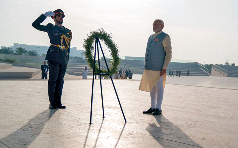 مودي يزور واحة الكرامة ويعرب عن تقديره لشهداء الإمارات