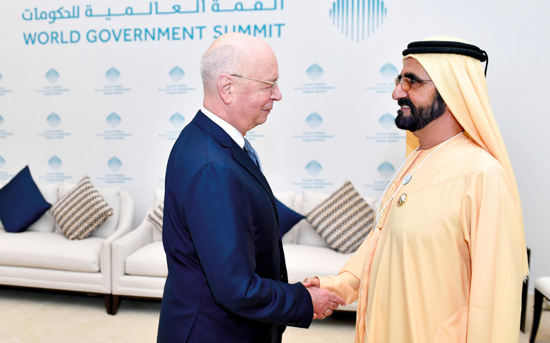 واستعرض صاحب السمو الشيخ محمد بن راشد آل مكتوم، والبروفيسور شواب، عدداً من الموضوعات المدرجة على أجندة القمة العالمية في نسختها السادسة، وسبل تفعيل توصيات وقرارات القمة من أجل استفادة الدول والحكومات من الأفكار والمقترحات والنتائج التي تسفر عنها مناقشات الخبراء والمستشارين والمسؤولين الحكوميين المشاركين في هذا التجمع العالمي الكبير.