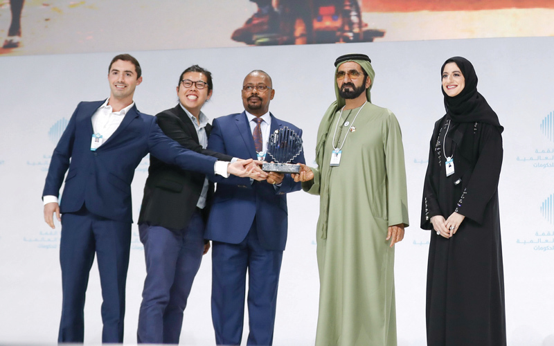وكرّم صاحب السمو الشيخ محمد بن راشد آل مكتوم حكومة كينيا، التي فازت بجائزة الابتكارات الحكومية، عن مشروع أجهزة ذكية في المركبات لصيانة الطرق.