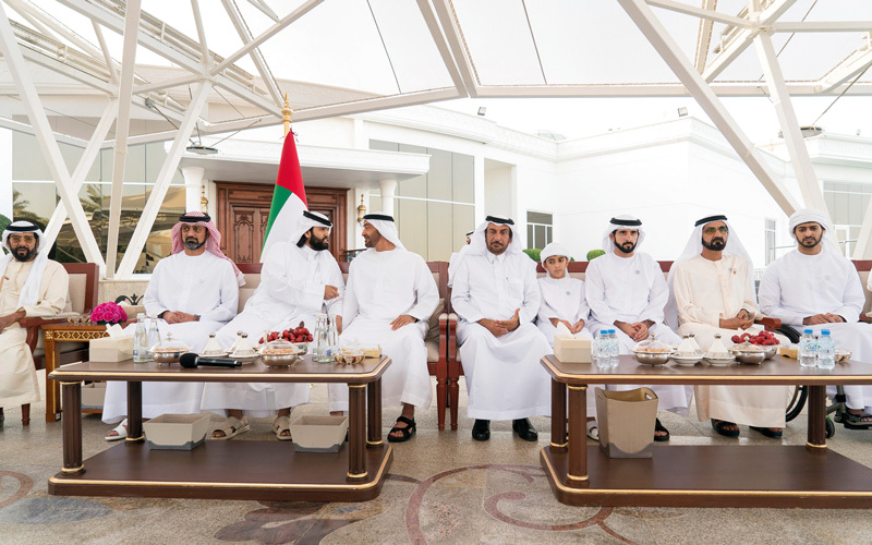 حضر اللقاء سمو الشيخ حمدان بن محمد بن راشد آل مكتوم ولي عهد دبي، وسمو الشيخ عمار بن حميد النعيمي ولي عهد عجمان، وسمو الشيخ حمدان بن زايد آل نهيان ممثل الحاكم في منطقة الظفرة، وسمو الشيخ طحنون بن محمد آل نهيان ممثل الحاكم في منطقة العين، وسمو الشيخ نهيان بن زايد آل نهيان رئيس مجلس أمناء مؤسسة زايد بن سلطان آل نهيان للأعمال الخيرية والإنسانية، وسمو الشيخ منصور بن زايد آل نهيان نائب رئيس مجلس الوزراء وزير شؤون الرئاسة، وسمو الشيخ حامد بن زايد آل نهيان رئيس ديوان ولي عهد أبوظبي، وسمو الشيخ عمر بن زايد آل نهيان نائب رئيس مجلس أمناء مؤسسة زايد بن سلطان آل نهيان للأعمال الخيرية والإنسانية، وسمو الشيخ خالد بن زايد آل نهيان رئيس مجلس إدارة مؤسسة زايد العليا للرعاية الإنسانية وذوي الاحتياجات الخاصة، والشيخ نهيان بن مبارك آل نهيان وزير التسامح.