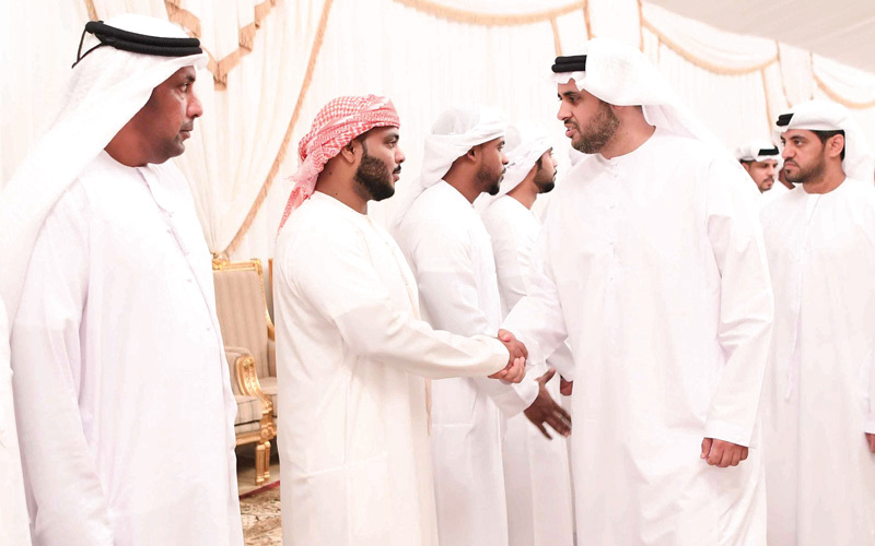 وأعرب سموه خلال زيارته مجلس العزاء بمنطقة العويد في الفجيرة، أمس، عن خالص تعازيه وصادق مواساته لذوي الشهيد، داعياً الله العلي القدير أن يتغمده بواسع رحمته، وأن ينزله منازل الصديقين والشهداء والأبرار، ويسكنه فسيح جناته، ويلهم ذويه الصبر والسلوان.