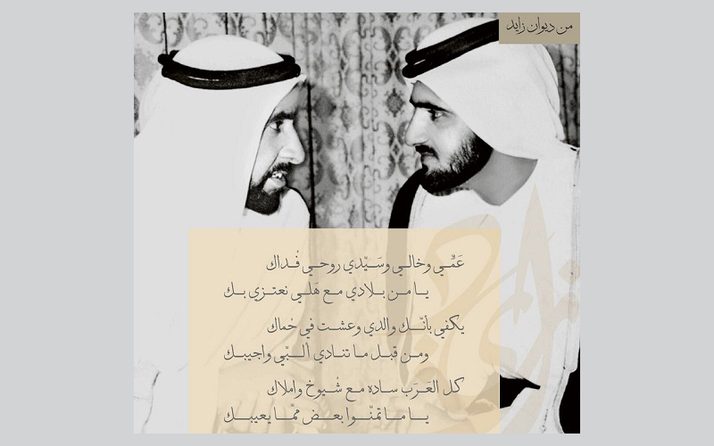 نشر صاحب السمو الشيخ محمد بن راشد آل مكتوم نائب رئيس الدولة رئيس مجلس الوزراء حاكم دبي، مقطع فيديو للمغفور له بإذن الله الشيخ زايد بن سلطان آل نهيان، طيّب الله ثراه، حيث قال صاحب السمو الشيخ محمد بن راشد آل مكتوم في تغريدة لاحقة ديوان زايد.. "87 قصيدة إلى زايد ومن أجل زايد وفي حب زايد".