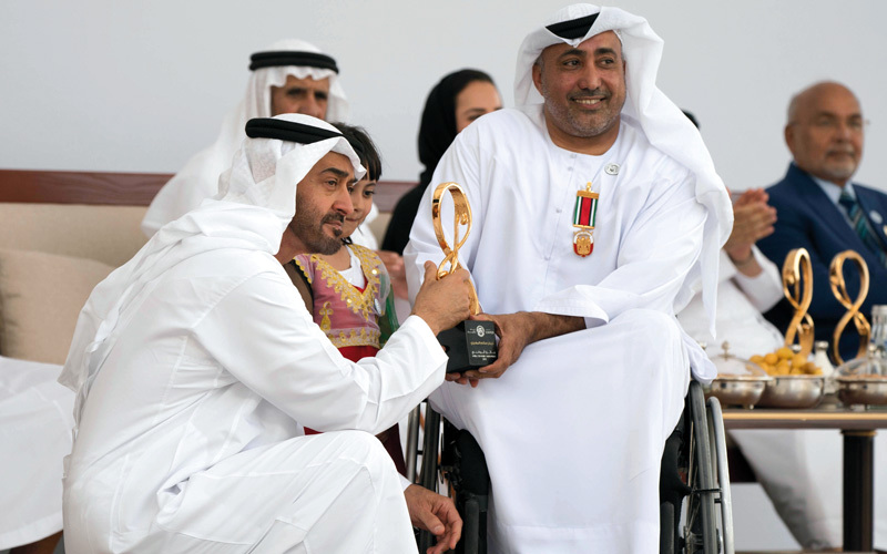 جاء ذلك، خلال تكريم صاحب السمو الشيخ محمد بن زايد آل نهيان، تسع شخصيات مميزة قدمت أعمالاً جليلة لمجتمع أبوظبي، ضمن حفل تكريم «جائزة أبوظبي»، الذي أقيم أمس في مجلس سموه بقصر البحر.