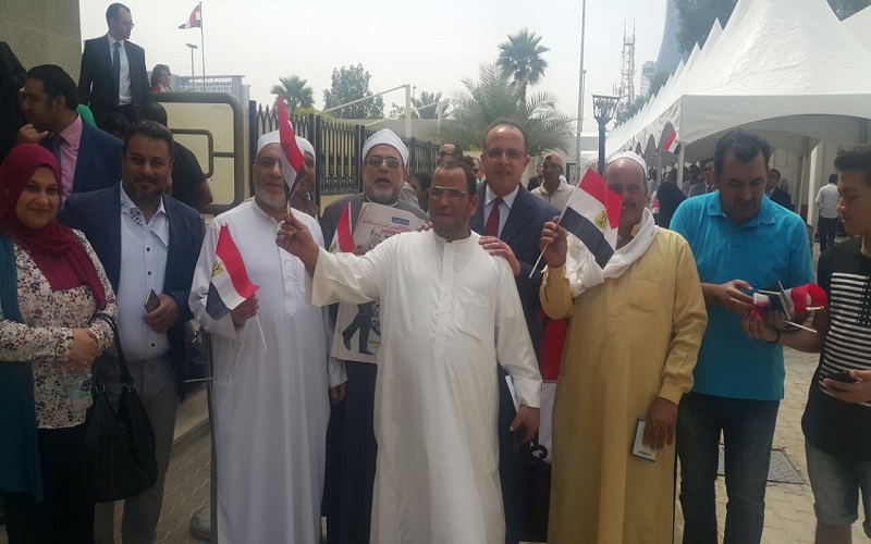 وعبر المصريون عن فرحتهم بالوقوف في طوابير الناخبين خارج لجنة السفارة في أبوطبي، حاملين الأعلام المصرية ومرددين الأغاني الوطنية في الشوارع الرئيسة والجانبية للسفارة، وذلك بعد أن تكدست السفارة ومحيطها الخارجي عن آخره بآلاف الناخبين من الرجال والنساء ومن كل الأعمار.