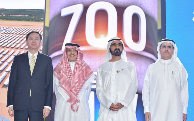 قام صاحب السمو الشيخ محمد بن راشد آل مكتوم، نائب رئيس الدولة رئيس مجلس الوزراء حاكم دبي، اليوم، بوضع حجر الأساس للمرحلة الرابعة من مجمع محمد بن راشد آل مكتوم للطاقة الشمسية بقدرة 700 ميجاوات والتي تعد أكبر مشروع استثماري للطاقة الشمسية المركّزة في العالم بما يعزز ريادة دولة الإمارات العربية المتحدة في مجال استخدام الطاقة النظيفة والمتجددة على خارطة العالم.