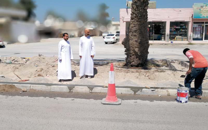 فريق من المتطوعين يتولى الإشراف على رصف الطرق ودهان الأرصفة. من المصدر