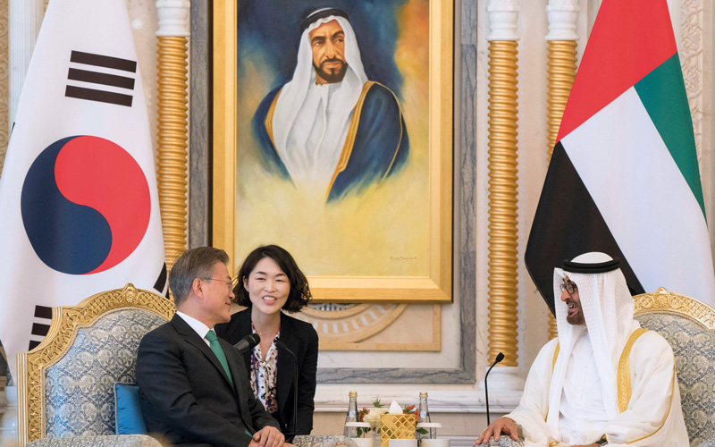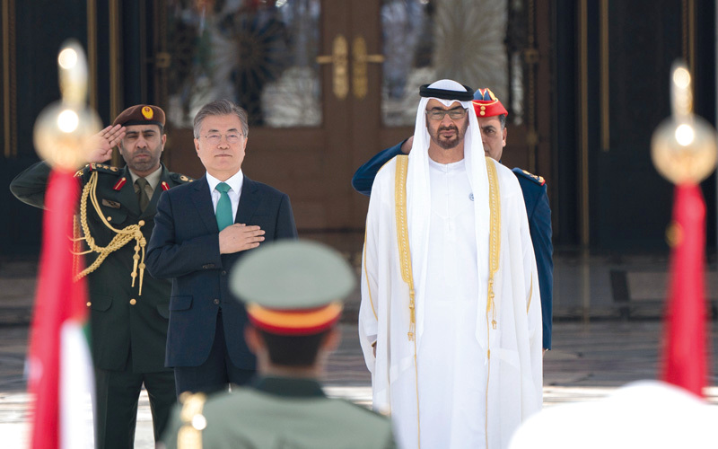 جاء ذلك، خلال جلسة المحادثات الرسمية، التي عقدت أمس في قصر الرئاسة بأبوظبي بين صاحب السمو الشيخ محمد بن زايد آل نهيان، ورئيس جمهورية كوريا الجنوبية الصديقة، مون جيه إن، الذي يقوم بزيارة رسمية للدولة.