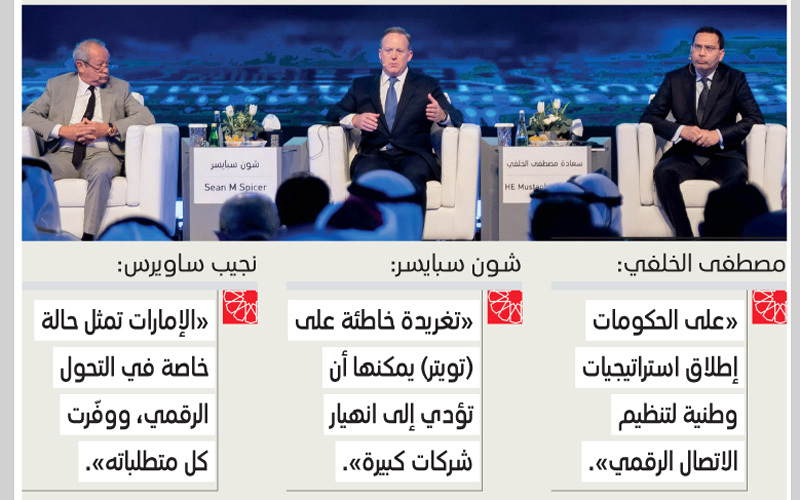 وتحدّث سبايسر عن «المستقبل الذي يسير بشكل متسارع، ودور الحكومات في مواجهة التطور الرقمي واللحاق به، ومواكبته، لحل أي مشكلة قد تواجهه، والتوجه نحو الشباب ومعرفة احتياجاتهم، وطرح مزيد من الأفكار التي تخلق توازناً مع القطاع الخاص».