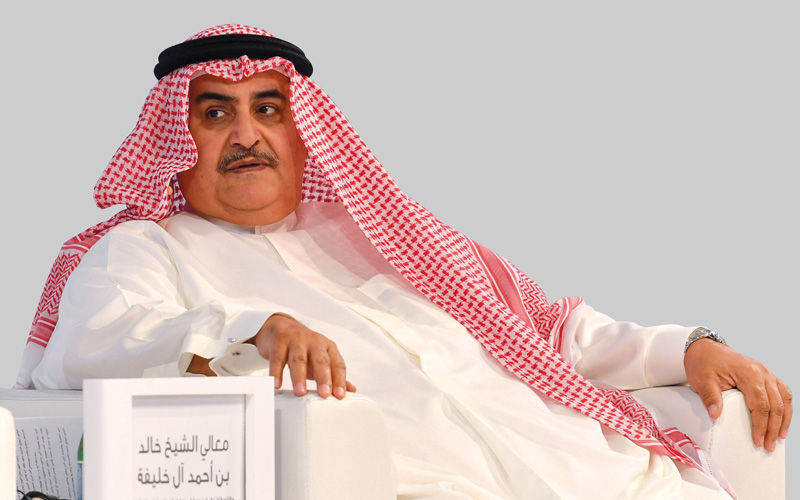 وتطرق الشيخ خالد بن أحمد آل خليفة إلى الدور الإيراني في المنطقة الخليجية، وأنه على المستوى الشعبي فإن العلاقات جيدة ولا مجال للمزايدة عليها، لافتاً إلى أن «النظام الإيراني الحالي يسعى للتدخل في كل شؤون دول المنطقة». وتابع أن «إيران كدولة أكبر من النظام الذي يحكمها، لذلك فإن التحديات الماثلة حالياً تتركز في محورين، هما: أولاً احتلال الجزر الإماراتية الثلاث، والثاني التدخلات ومحاولات الهيمنة والسيطرة ومحاولة إسقاط الدول»، وأوضح أن «إيران إذا اختارت التخلي عن تلك التوجهات، فإن المنطقة لن تتردد في مد جسور معها».
