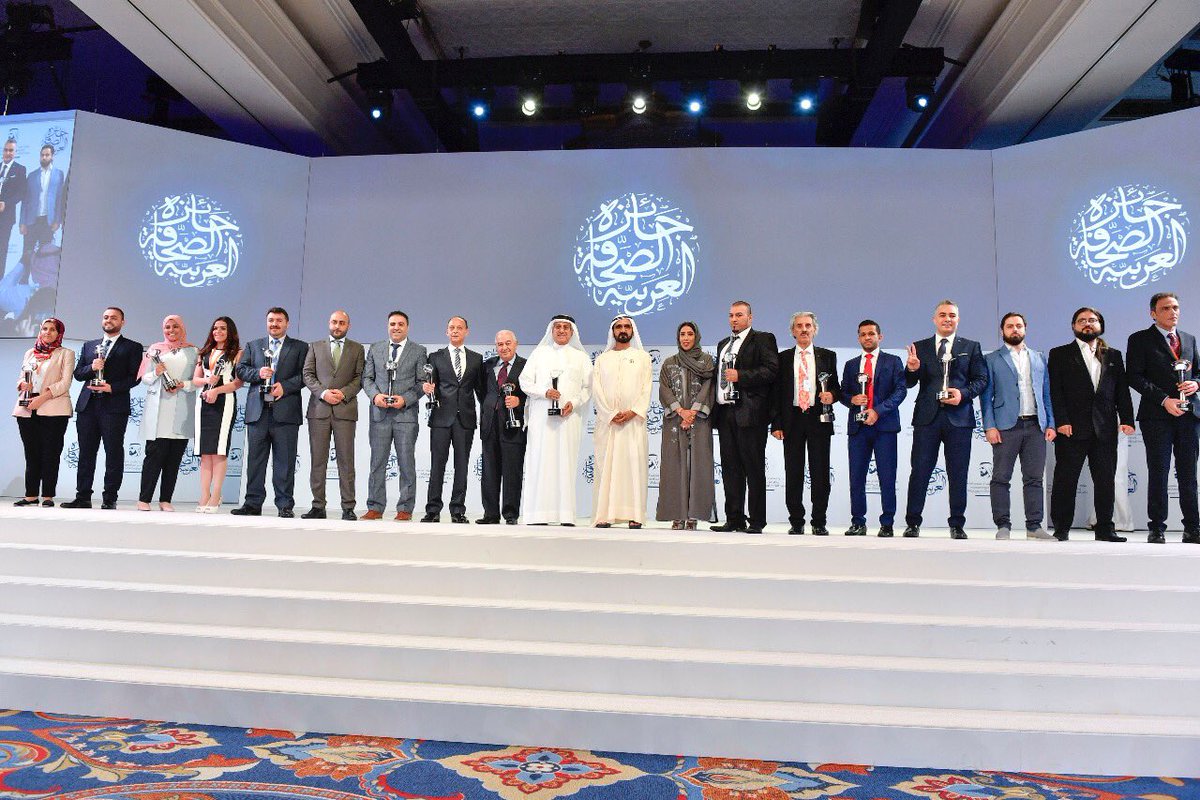 كرّم صاحب السمو الشيخ محمد بن راشد آل مكتوم، نائب رئيس الدولة رئيس مجلس الوزراء حاكم دبي ، الفائزين بـ "جائزة الصحافة العربية" للعام 2018 ضمن مختلف فئاتها، وذلك خلال الحفل الذي أقيم في مدينة جميرا تزامناً مع ختام الدورة السابعة عشرة لـ "منتدى الإعلام العربي"؛ المنصة الإعلامية الأهم والأكبر على مستوى العالم العربي.