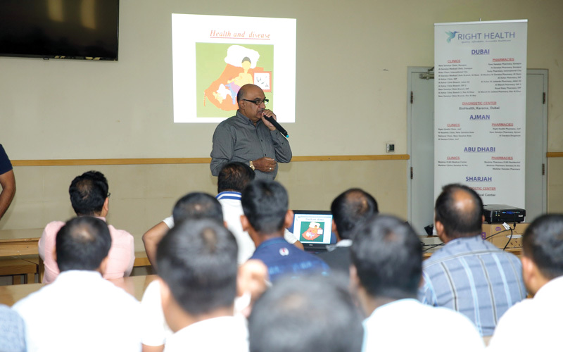 وفي إطار هذه المبادرة، الرامية إلى الاستثمار في صحة الناس ورفاههم، وتعزيز وعيهم الصحي، والتي تأتي تماشياً مع أهداف «عام زايد»، قام أطباء من مؤسسة رايت هيلث بزيارة مخيم للعمال في منطقة جبل علي، لتثقيف العمال بقضايا متعلقة بأساليب العيش الصحية، وإدارة الضغوط، حيث شهدت الزيارة حضور نحو 600 عامل. وحصل العمال على فرصة الخضوع لفحوص صحية مجانية في عيادة رايت هيلث لمراقبة ضغط الدم ومستويات سكر الدم.