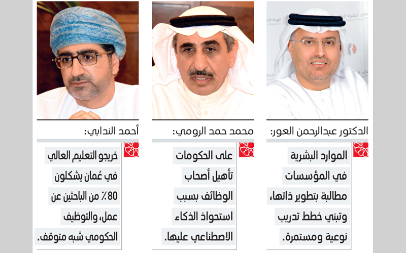 وقال وكيل وزارة الخدمة المدنية لشؤون الخدمة المدنية في سلطنة عمان، أحمد الندابي، إن التحول إلى الحكومة الذكية يمثل تحدياً للحكومات، «فخريجو التعليم العالي في عُمان أصبحوا يشكلون 80% من الباحثين عن عمل، والتوظيف الحكومي شبه متوقف».