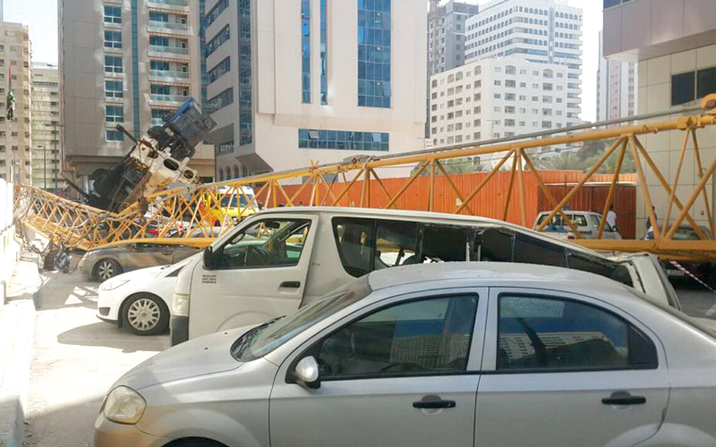 وكانت رافعة قد سقطت في موقع بناية قيد الإنشاء بمنطقة النادي السياحي في أبوظبي، أخيراً، ما أدى إلى تضرر سبع مركبات صادف وقوفها في منطقة سقوط الرافعة.