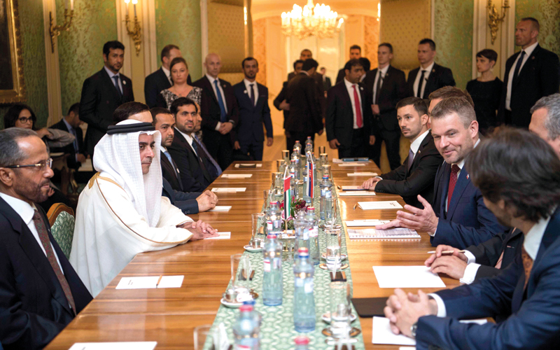سيف بن زايد أثناء الاجتماع مع رئيس الوزراء السلوفاكي. من المصدر