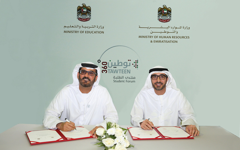 جاء ذلك، على هامش منتدى الطلبة «توطين 360»، الذي اختتم فعالياته في مركز دبي التجاري العالمي، أخيراً، بمشاركة نحو 3200 من طلبة الثانوية العامة ومؤسسات التعليم العالي في الدولة.
