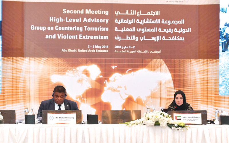 انطلقت في أبوظبي، أمس، فعاليات الاجتماع الثاني للمجموعة الاستشارية البرلمانية الدولية رفيعة المستوى، المعنية بمكافحة التطرف والإرهاب، برئاسة رئيس المجموعة الدولية رئيسة المجلس الوطني الاتحادي، الدكتورة أمل عبدالله القبيسي، وحضور الأمين العام للاتحاد البرلماني الدولي، مارتن شونجونج، الذي أكد أن الإمارات من أكثر دول العالم، التي تتسم بمواقف ثابتة في مكافحة الإرهاب، وتستند إلى مجتمع متسامح ومتعايش.