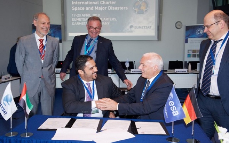 وقعت دولة الإمارات - ممثلة بوكالة الإمارات للفضاء - رسميا على "الميثاق الدولي للفضاء والكوارث" لتصبح بذلك العضو الـ 17 عالميا وأول دولة عربية وإسلامية تنال هذه العضوية المرموقة بعد فوزها بالتصويت ضمن الاجتماع الدوري لأعضاء الميثاق الذي عقد في مدينة درمستادت الألمانية.