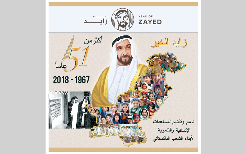 وأضاف: «ونحن نوقع هذه الاتفاقية نحتفل بـ(عام زايد)، وكذلك مرور أكثر من 51 عاماً على بداية مبادرات الخير والعطاء الإنساني التي أطلقها المغفور له الشيخ زايد بن سلطان آل نهيان، منذ عام 1967، بنهجه ورؤيته وثوابته الإنسانية، في جمهورية باكستان الإسلامية».