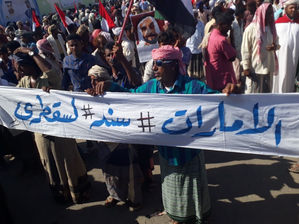 خرج أهالي محافظة سقطرى اليمنية اليوم في تظاهرة حاشدة دعماً لجهود التنمية التي تقودها وتنفذها الإمارات والتحالف العربي الداعم للشرعية في اليمن