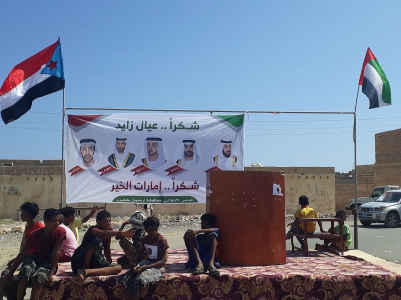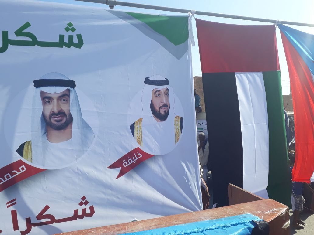 كما رفع الأهالي لافتات تعبر عن وقفة شكر وعرفان لدولة الإمارات وأبناءها المخلصين الذين ضحوا بدمائهم الزكية نصرة للحق .