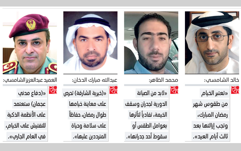 فيما شددت إدارة الدفاع المدني في أم القيوين على أن موافقتها تعد شرطاً أساسياً لنصب الخيام الرمضانية في الإمارة.