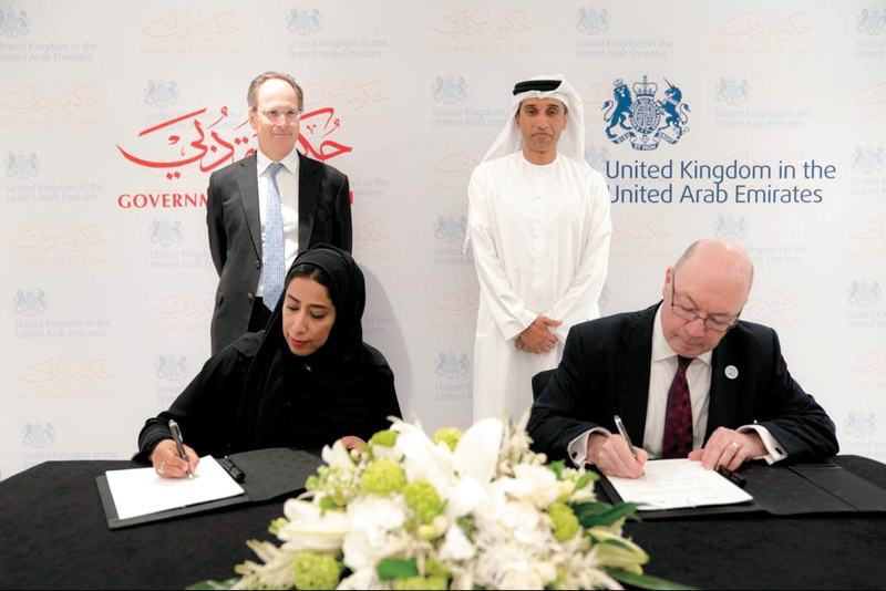 وقّعت الاتفاقية ممثلة لحكومة دبي المدير العام للمكتب الإعلامي لحكومة دبي، منى غانم المرّي، ووزير الدولة البريطاني لشؤون الشرق الأوسط، أليستر بيرت، ممثلاً عن الحكومة البريطانية، بحضور الأمين العام للمجلس التنفيذي لإمارة دبي، عبدالله البسطي، ومساعد الأمين العام لقطاع شؤون المجلس التنفيذي والأمانة العامة، المهندس أحمد المهري.