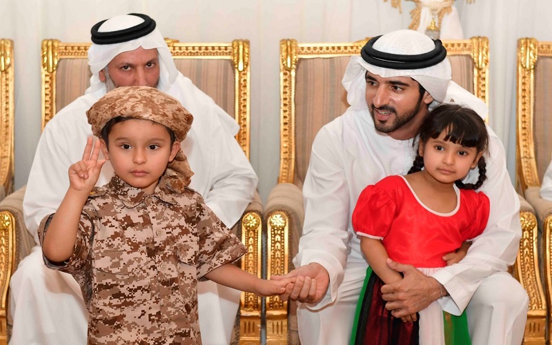 حمدان بن محمد بن راشد يقدم واجب العزاء لأسرة الشهيد سعيد الهاجري