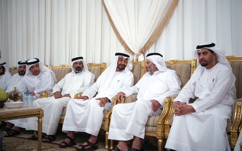 وقدّم واجب العزاء، إلى جانب سموه، سمو الشيخ حمدان بن زايد آل نهيان، ممثل الحاكم في منطقة الظفرة، وسمو الشيخ هزاع بن زايد آل نهيان، نائب رئيس المجلس التنفيذي لإمارة أبوظبي، والشيخ خليفة بن طحنون آل نهيان، مدير مكتب شؤون أسر الشهداء في ديوان ولي عهد أبوظبي. وأكد صاحب السمو الشيخ محمد بن زايد آل نهيان، أن شهداء الإمارات الأبرار يسطرون مواقف عظيمة في الشجاعة والإقدام والتضحية، معرباً عن فخره واعتزازه بتضحياتهم، وبمواقف أسرهم المشرفة، التي تقدم أغلى ما تملك لأجل الوطن والواجب الإنساني. وقال سموه إن القيم التي يواصل أبناء الإمارات ترسيخها في التضحية والبذل والفداء تعد صمام أمان والدرع الحصين لحماية الوطن وصون مكتسباته ليبقى عزيزاً قوياً وتظل رايته عالية خفاقة شامخة.