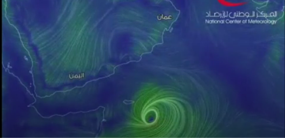 يتابع المركز الوطني للأرصاد عاصفة مدارية تتجه إلى الشمال والشمال الغربي بسرعة 13 كيلومترا في الساعة لتصل إلى جنوب عمان وجنوب شرق اليمن خلال الأيام المقبلة، مشيرا إلى أن سرعة الرياح حول العاصفة تتراوح من 60 إلى 75 كيلومترا في الساعة.