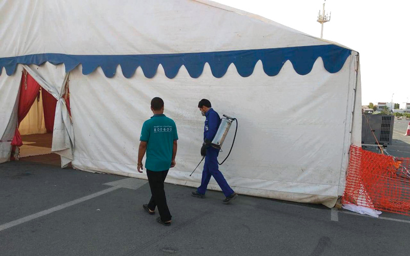 وتم وضع خطة متكاملة، خلال شهر رمضان المبارك، للقيام بعمليات المكافحة في الصباح الباكر، قبل ارتفاع درجات الحرارة أثناء النهار لكل الخيام الرمضانية، والتي بلغ عددها 110 خيام إفطار صائم، وزعت في أرجاء إمارة دبي.