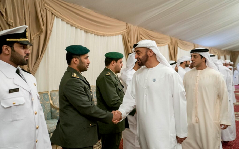 قدم صاحب السمو الشيخ محمد بن زايد آل نهيان ولي عهد أبوظبي نائب القائد الأعلى للقوات المسلحة اليوم واجب العزاء إلى ذوي وأسر شهداء الوطن البواسل ..الشهيد خليفة سيف سعيد الخاطري والشهيد عبيد حمدان سعيد العبدولي والشهيد خميس عبدالله خميس الزيودي والشهيد علي محمد راشد الحساني، الذين استشهدوا أثناء تأديتهم واجبهم في عملية "إعادة الأمل" ضمن قوات التحالف العربي الذي تقوده المملكة العربية السعودية الشقيقة في اليمن.