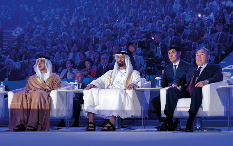 من جانب آخر، شهد صاحب السمو الشيخ محمد بن زايد آل نهيان، ورئيس جمهورية كازاخستان الصديقة، نور سلطان نزار باييف، افتتاح مركز أستانا المالي الدولي.