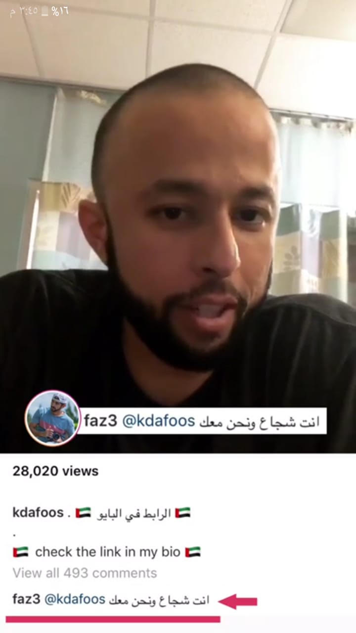 وما أن نشر خليفة الفيديو، حتى كان ولي عهد دبي من اوائل المساندين له، اذ علق سموه على حساب خليفة بقوله "انت شجاع ونحن معك".