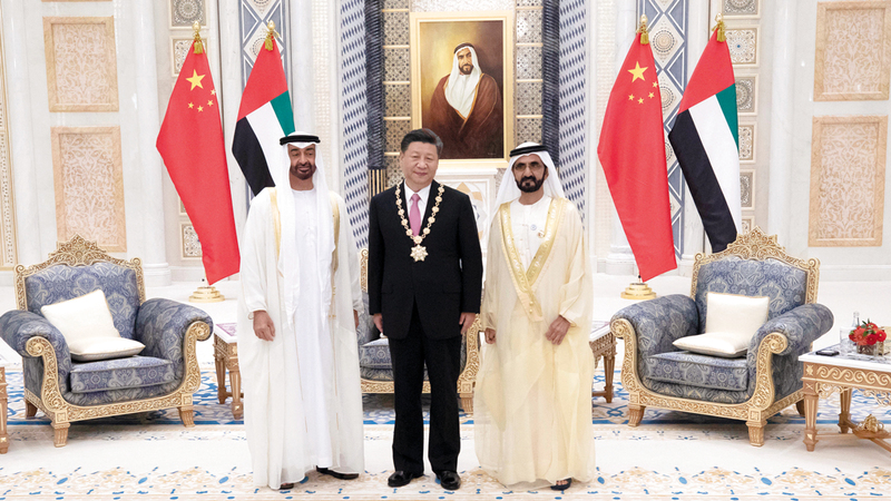 محمد بن زايد قلّد الرئيس الصيني «وسام زايد» بحضور محمد بن راشد. وام