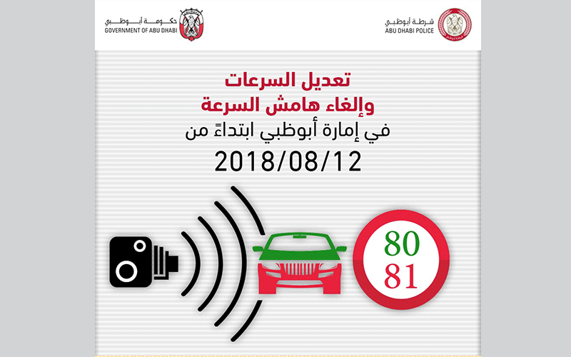 أعلنت القيادة العامة لشرطة أبوظبي بدء تنفيذ الإجراءات الخاصة بإلغاء هامش السرعة على الطرق في إمارة أبوظبي وتعديل السرعات المعمول بها حاليا وتوحيد سرعة ضبط الرادار مع سرعة اللوحات المرورية على طرق الإمارة اعتبارا من 12 أغسطس المقبل.