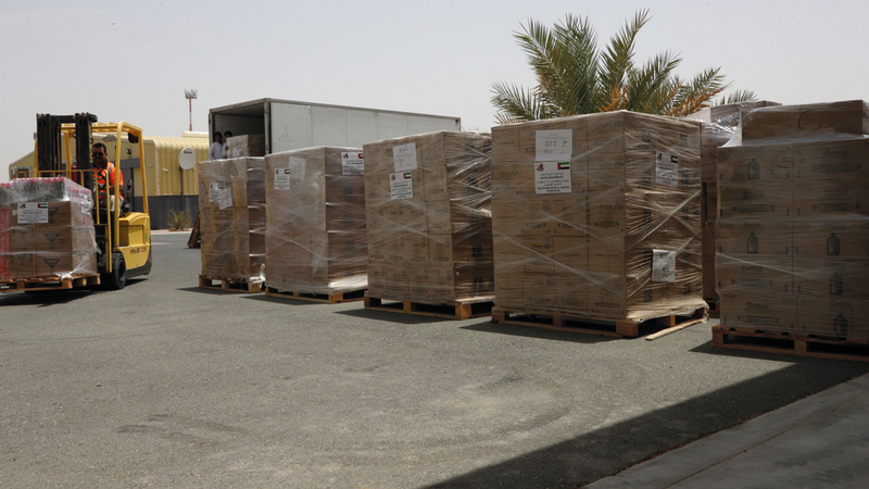 المواد الإغاثية تضمنت مستلزمات إيوائية منها 3000 بطانية و700 خيمة. وام