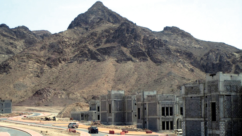 طريق داخلي في حتا بجانب أبنية تحت الإنشاء. من المصدر